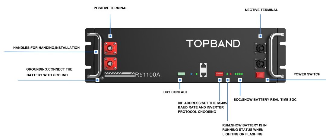 Tekniske detaljer Topband Rack batteri