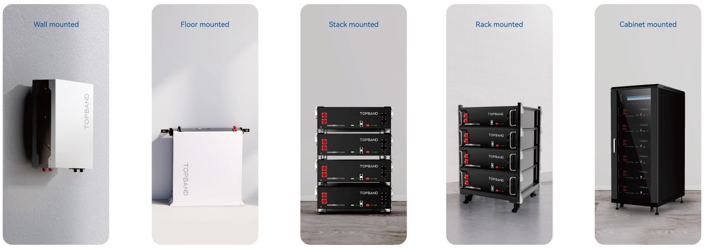 Batteriet kan brukes som det er, men det er også mulig å montere med veggmonteringssett, gulmontering, stablet eller i ulike Rack skap. Se tilbehør for kjøp av monteringssett.